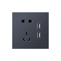 YLP-Hake五孔10A-双USB 2A-标准版-墙壁插座-丝墨青
