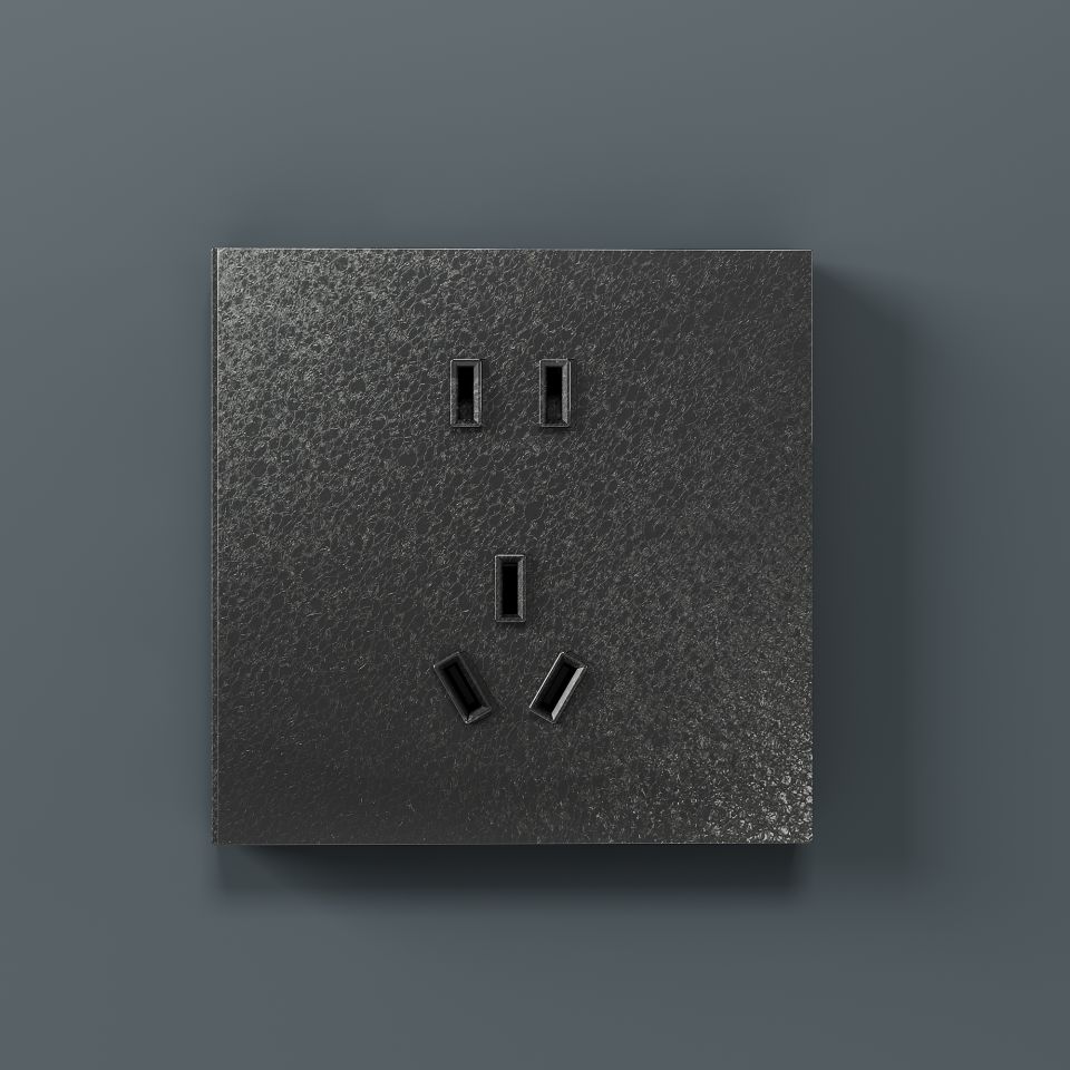 YLP-S系列五孔插座-标准版-10A-微晶石-晶墨灰