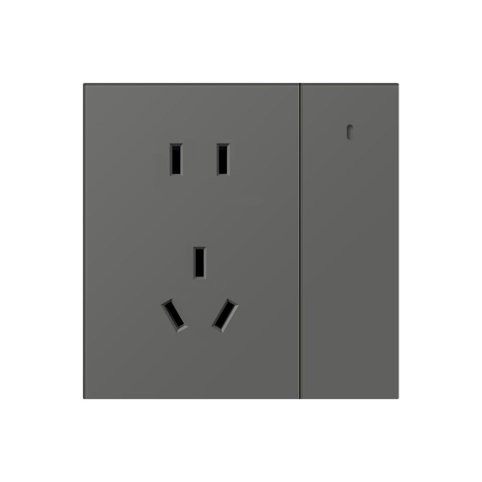 YL-Z1系列一开五孔插座-标准版-10A-灰色