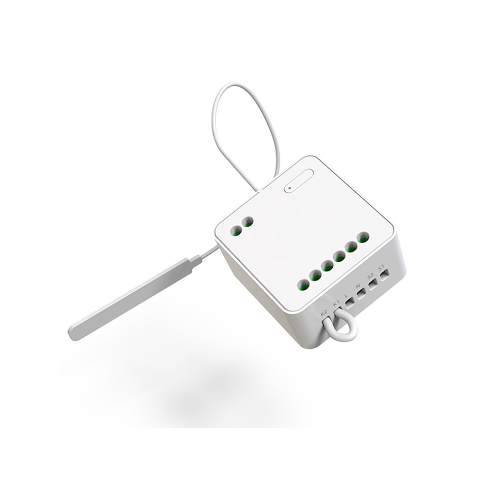 零火供电、双路继电器,情景联动、远程控制,传统电器秒变智能,体积小易安装,产品尺寸:50×50×34mm,每路负载:≤200W,继电器数量:2路