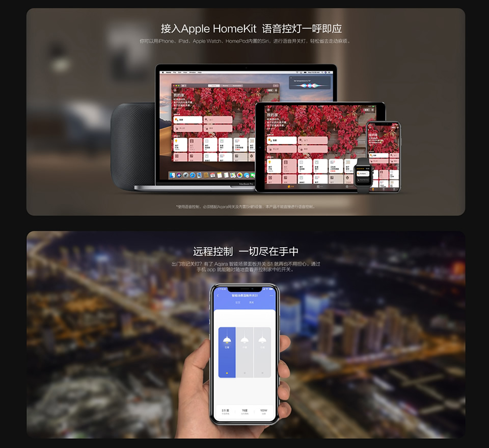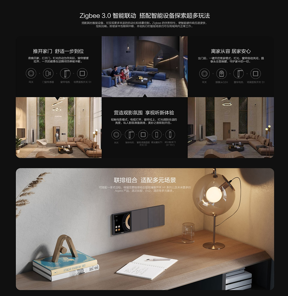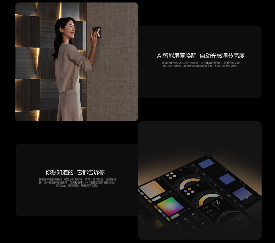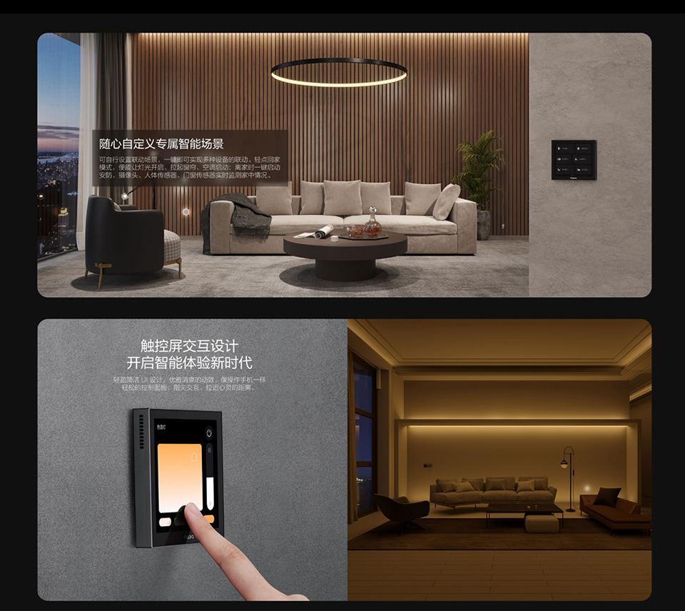 定时、语音、远程、触摸控制,场景、灯光、空调温控控制、可联排安装
