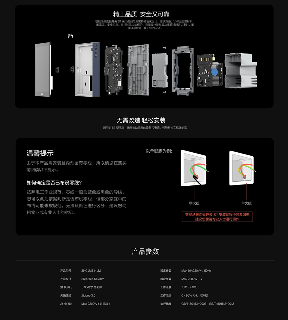 3.95英寸 全面屏 Max 2200W(共三路) Zigbee 3.0