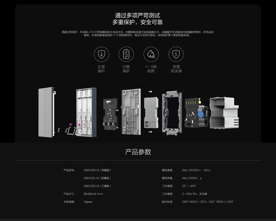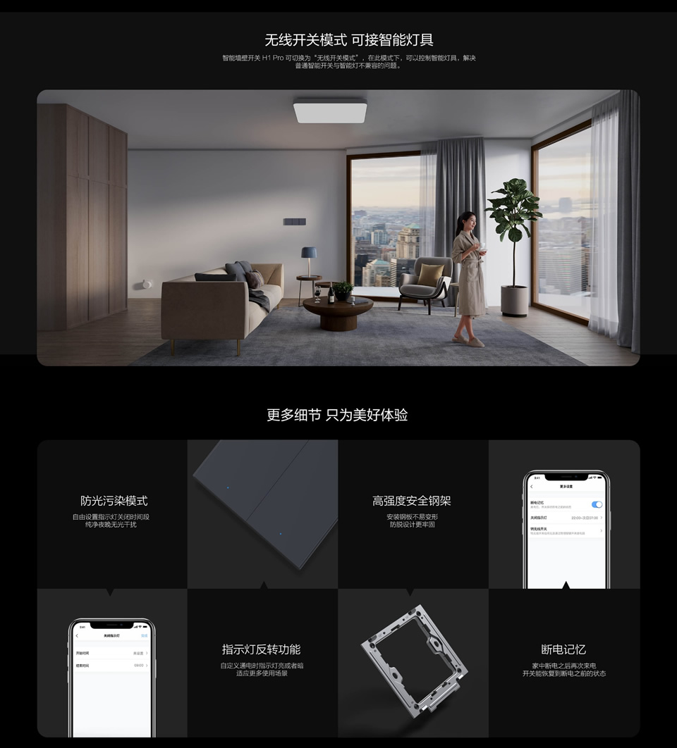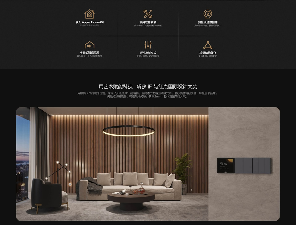 别墅级智能开关,多种控制方式:语音、远程、定时等,可联排安装、具备中继功能