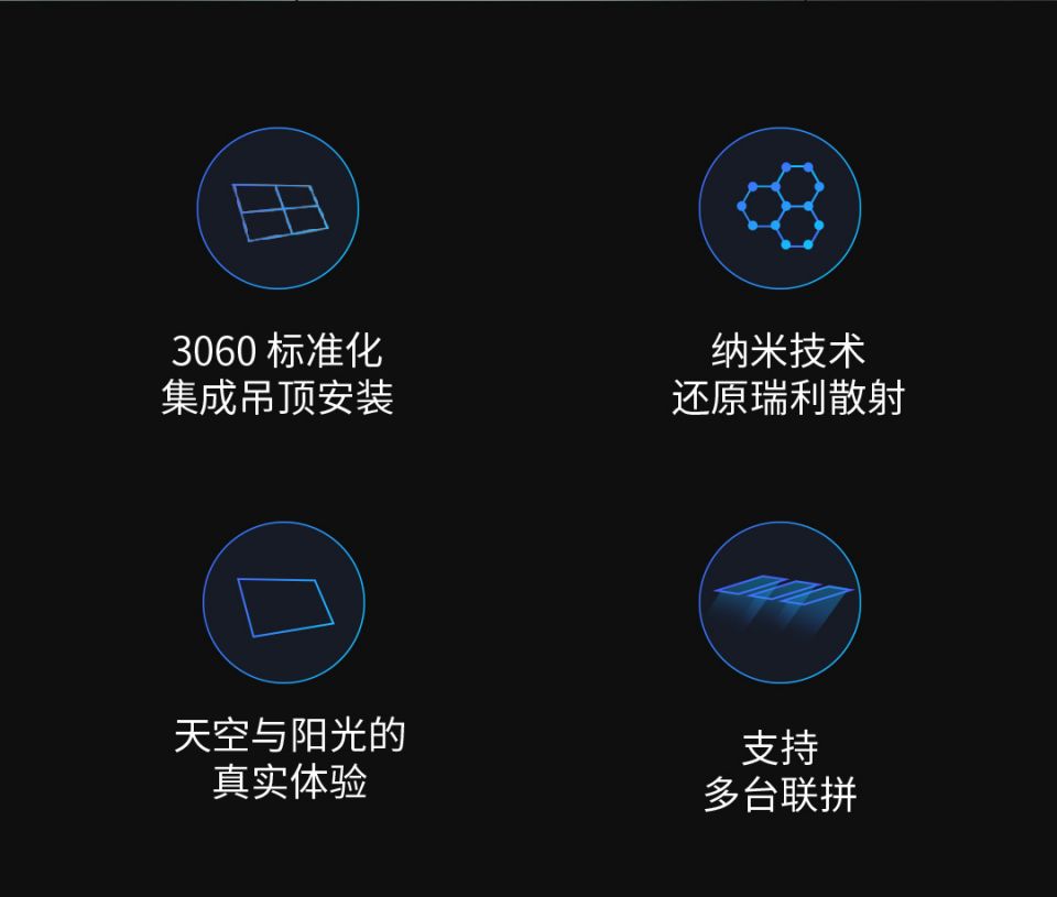 3060标准化集成吊顶安装,纳米技术还原瑞利散射,天空与阳光的真实体验,支持多台联拼。