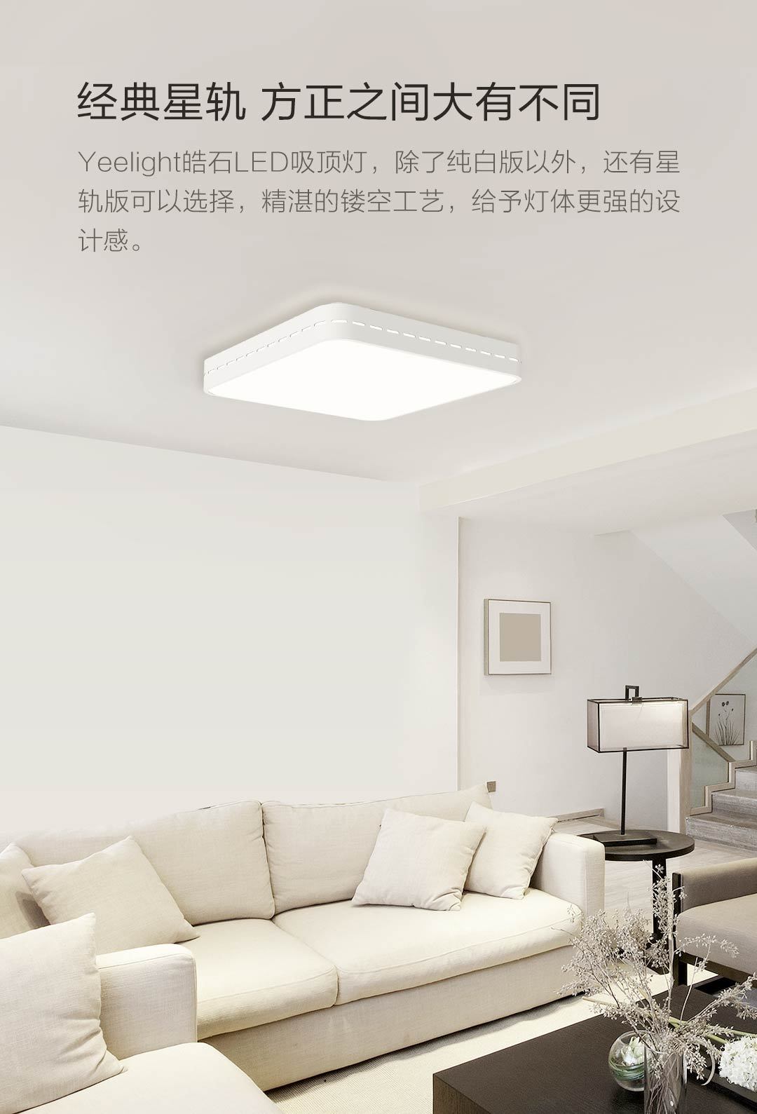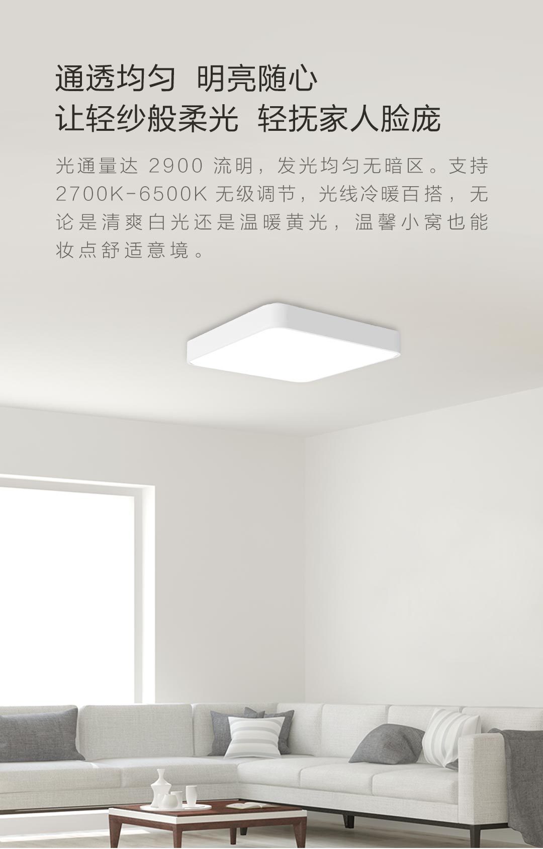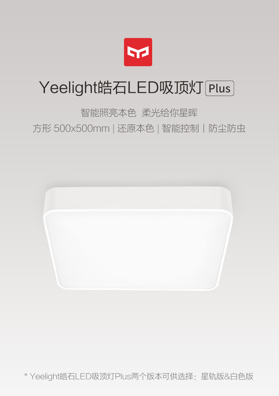 方形500*500MM,还原本色,冷暖调节,小爱控制,智能控制,防尘防虫,米家智能联动。