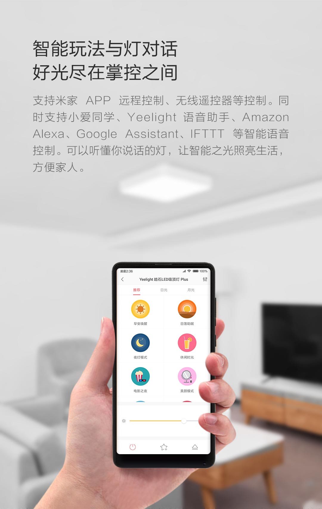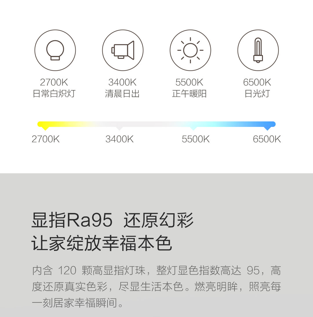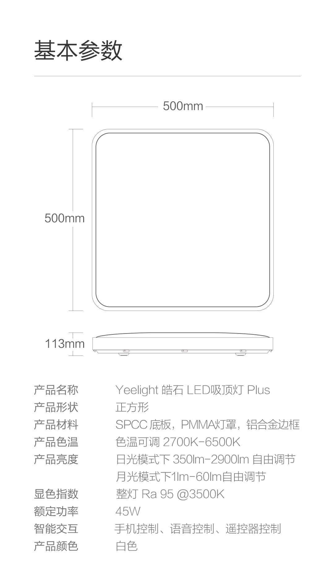 方形500*500MM,还原本色,冷暖调节,小爱控制,智能控制,防尘防虫,米家智能联动。