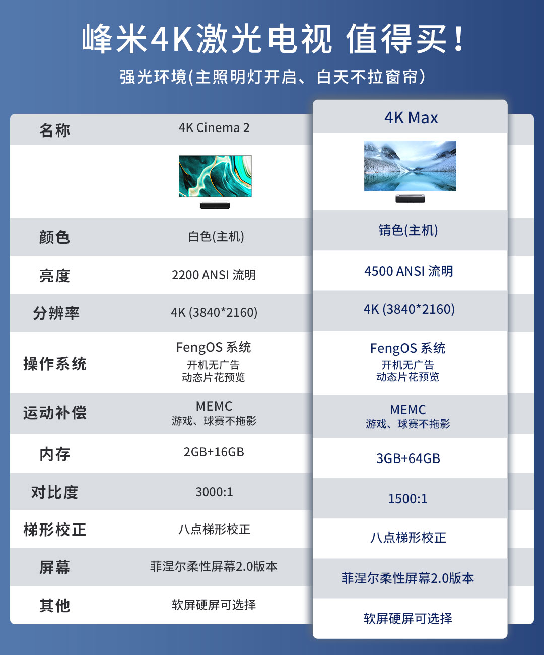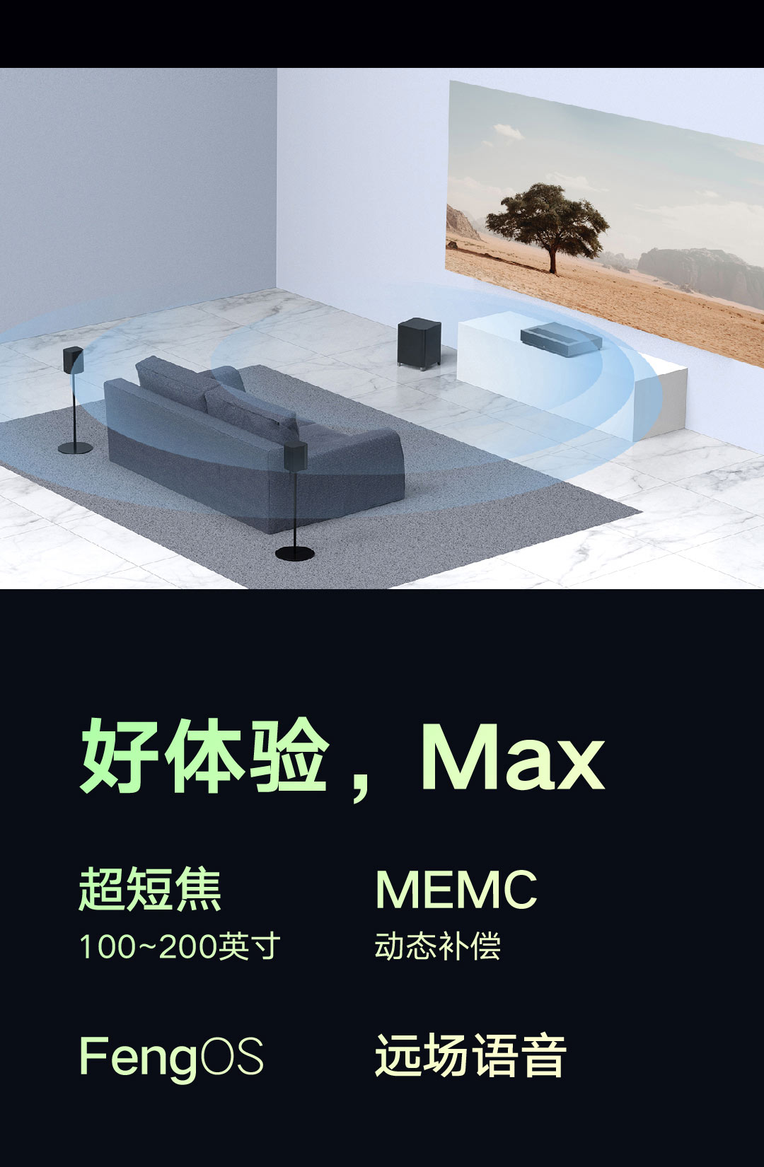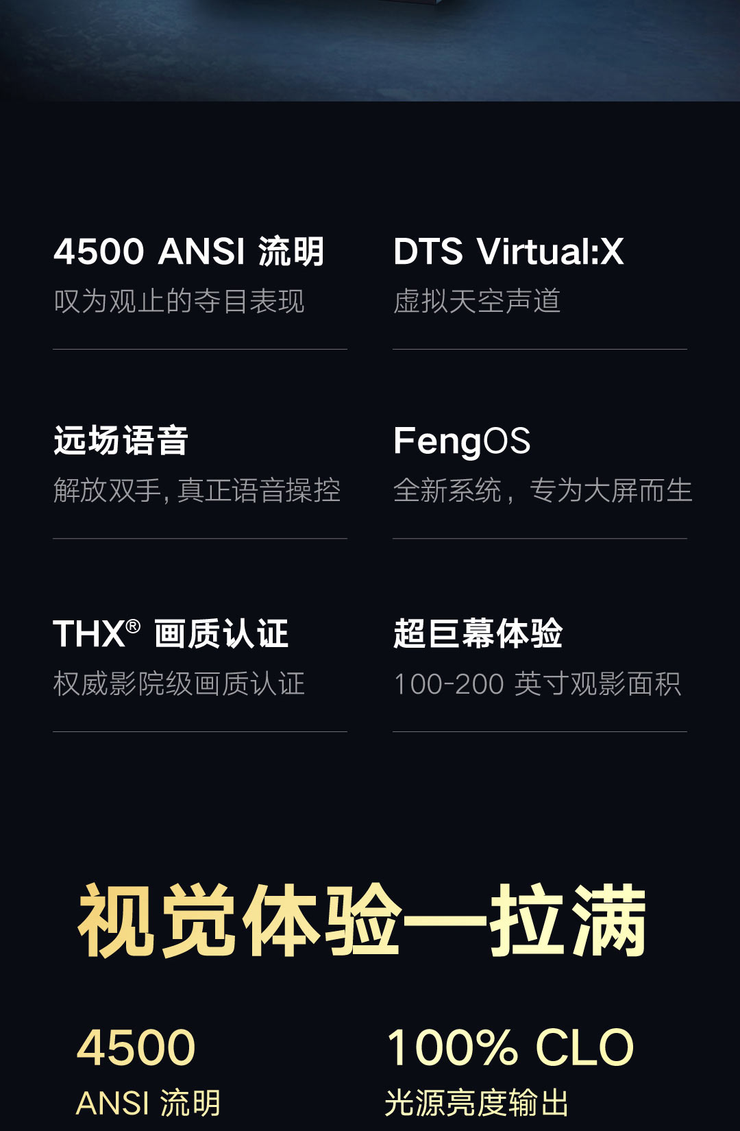 4500ANSI流明,巨幕观影,FengOS系统