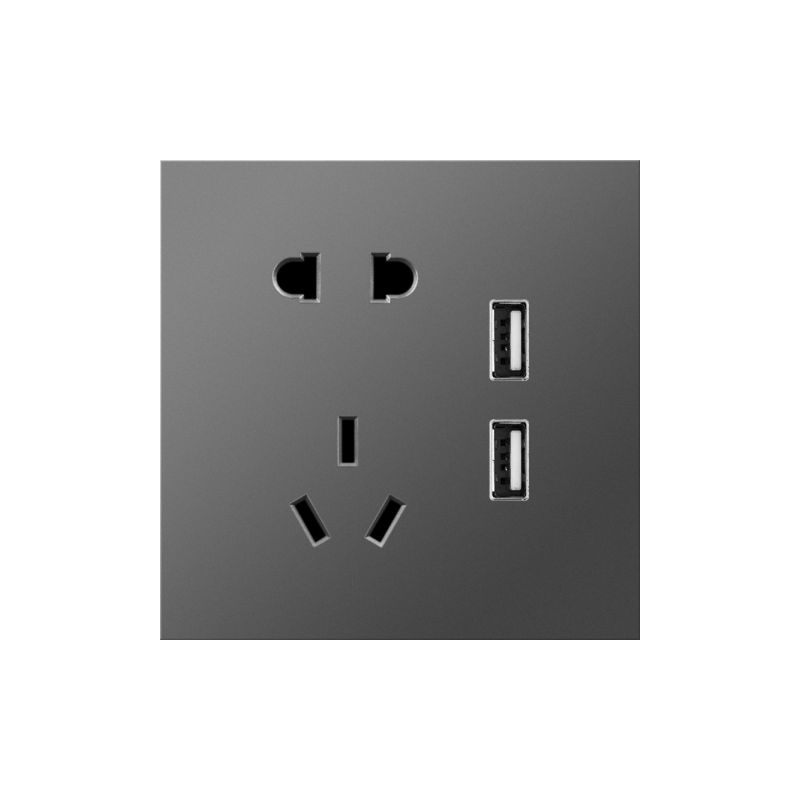YLP-Hake五孔10A-双USB 2A-标准版-墙壁插座-晶墨灰