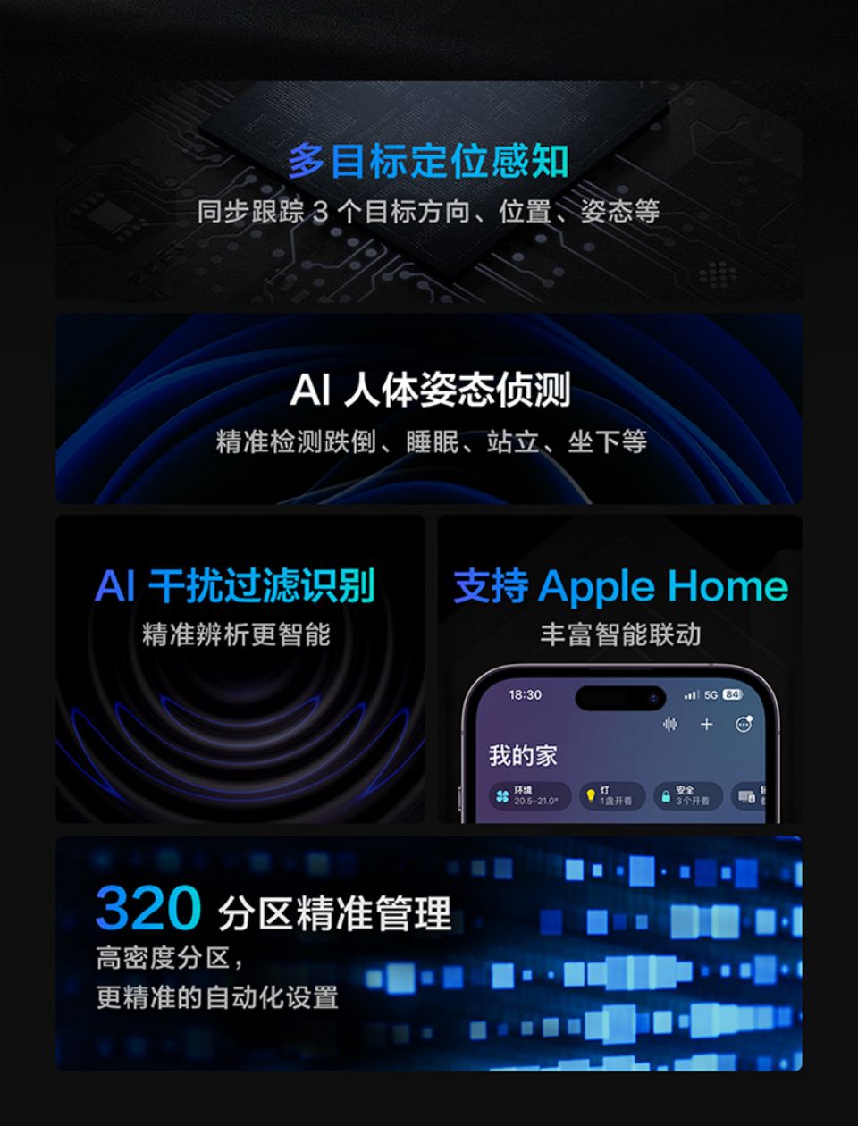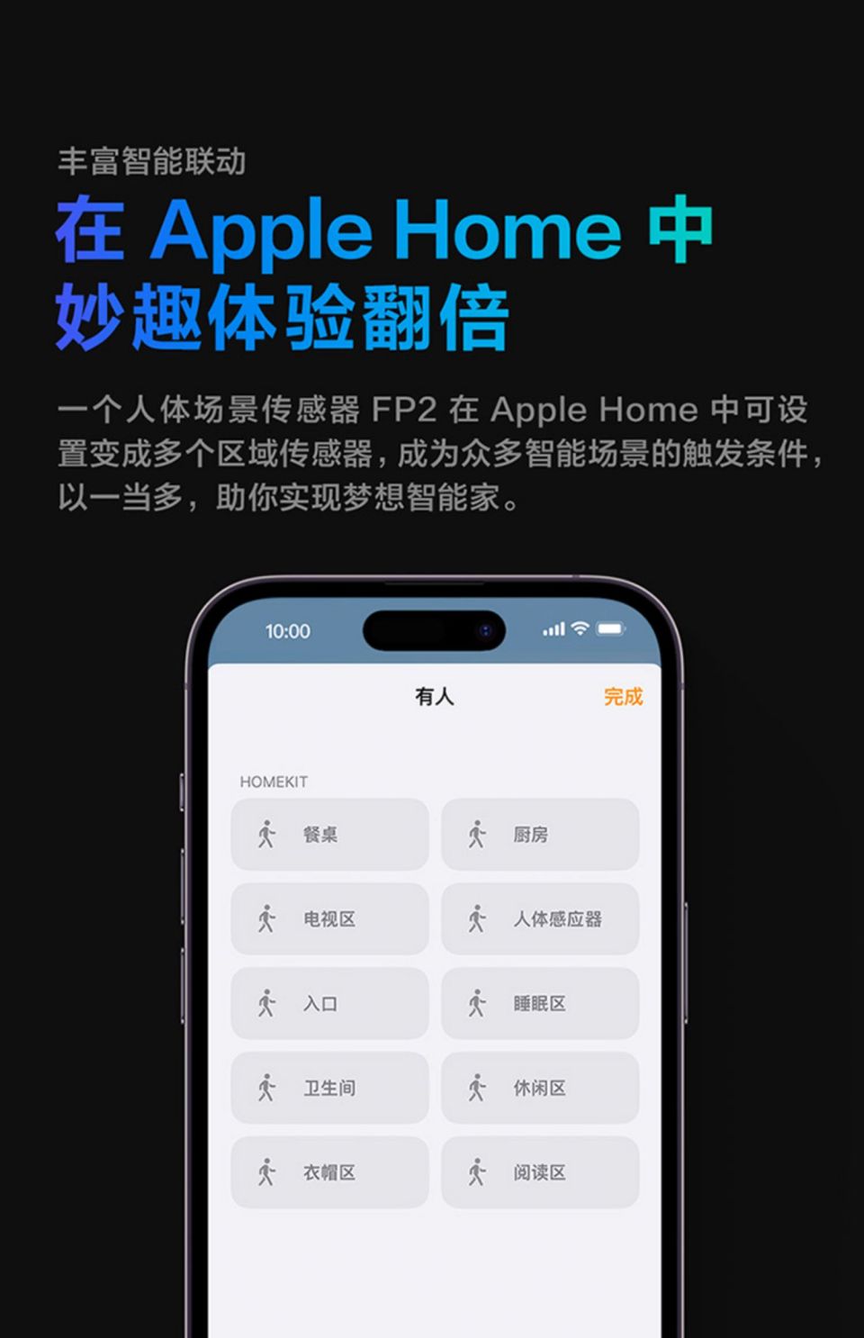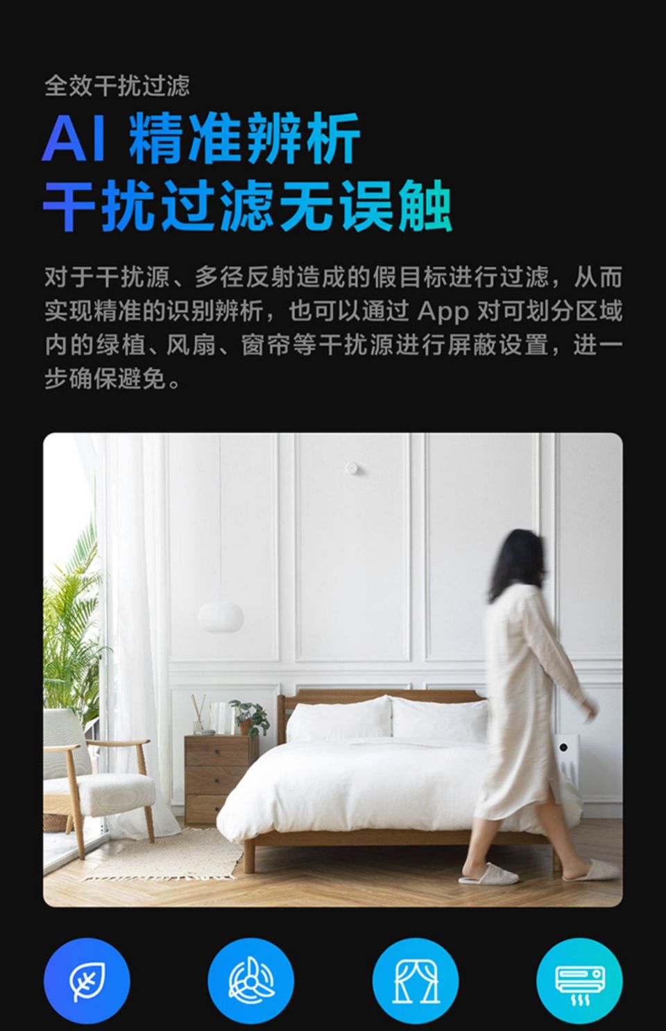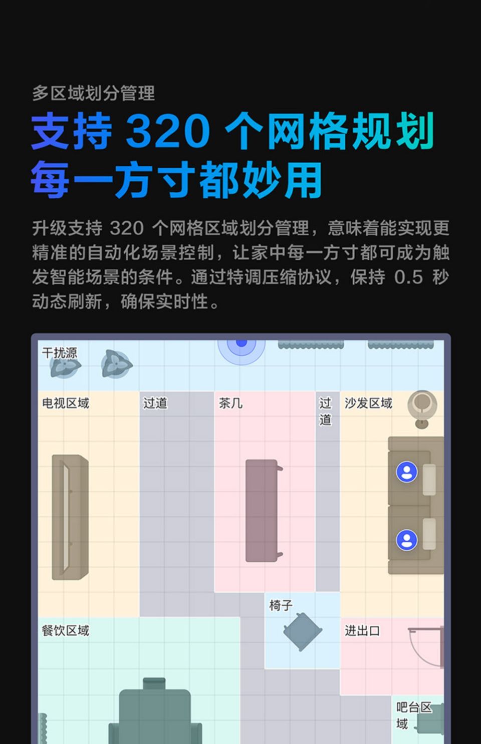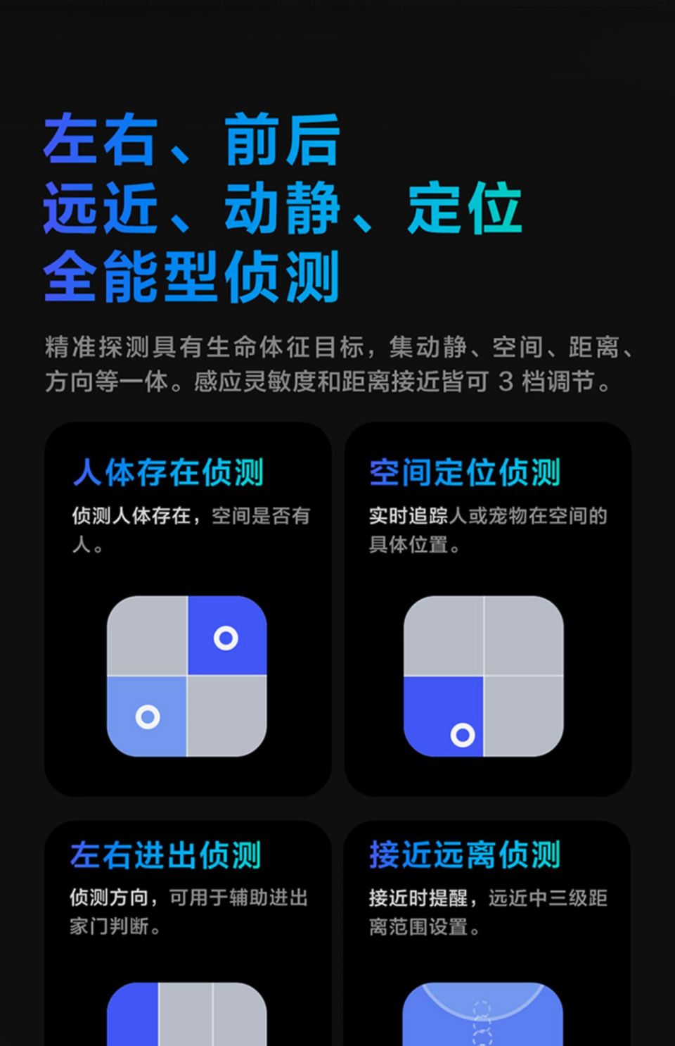 人体场景传感器FP2是一款人体存在、多人区域定位和跌倒侦测产品。可实现大范围人体存在侦测、多目标跟踪、跌倒侦测,支持区域规划、光照感应、Wi-Fi局域网自动化、干扰自动配置等功能;采用Type-C接口并在设备底部出线,适合灵活的隐藏式安装。
